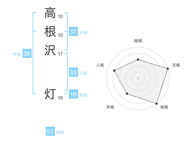 高根沢 灯さんを姓名の画数から五運を鑑定