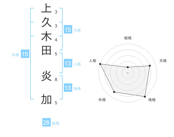 上久木田 炎加さんを姓名の画数から五運を鑑定
