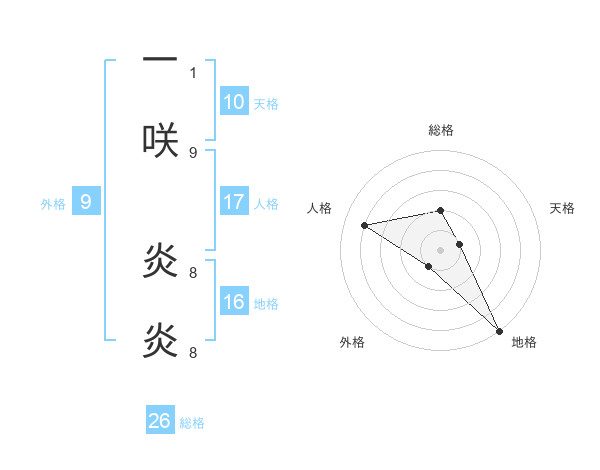 一咲 炎炎さんを姓名の画数から五運を鑑定