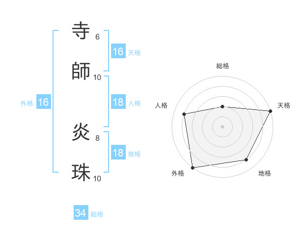 寺師 炎珠さんの天格は16画の5点!
