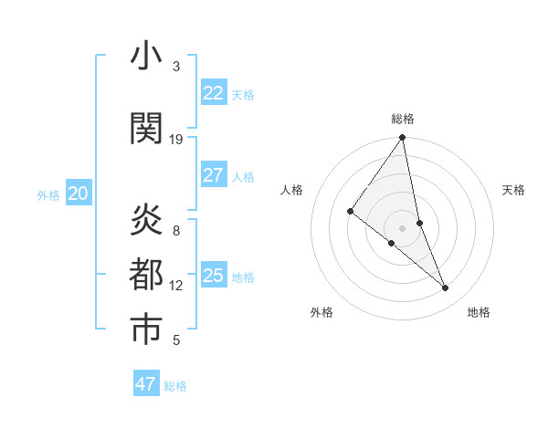 小関 炎都市さんを姓名の画数から五運を鑑定
