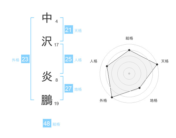 中沢 炎鵬さんの天格は21画の5点!