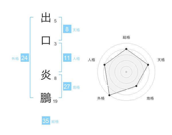 出口 炎鵬さんの総格は35画の4点!