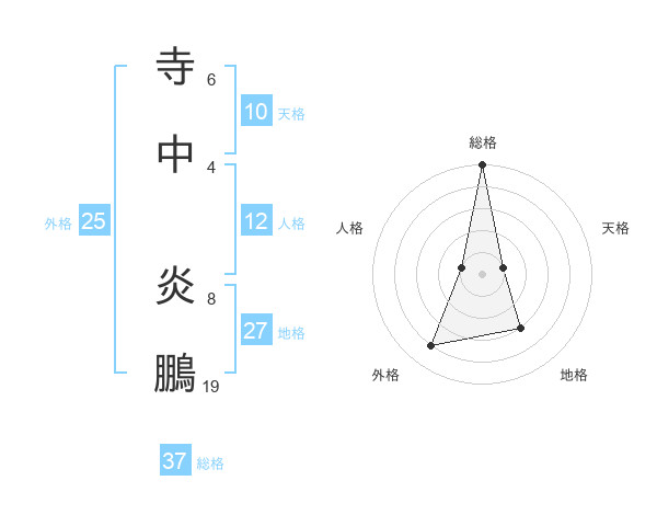 寺中 炎鵬さんの総格は37画の5点!