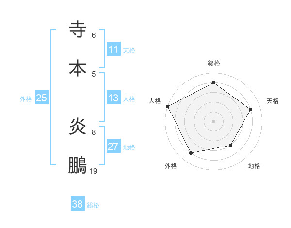 寺本 炎鵬さんの総格は38画の4点!