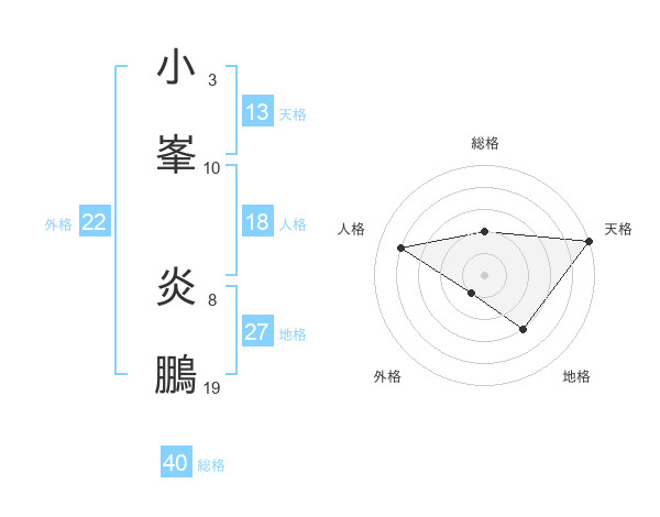 小峯 炎鵬さんの天格は13画の5点!