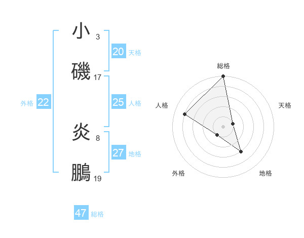 小磯 炎鵬さんの総格は47画の5点!