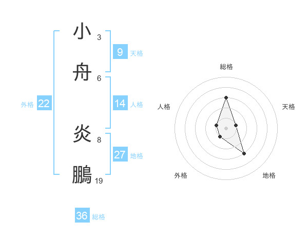 小舟 炎鵬さんを姓名の画数から五運を鑑定