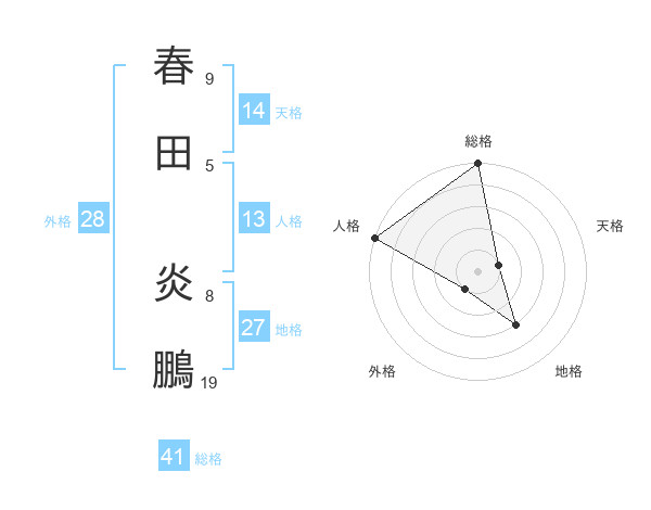 春田 炎鵬さんを姓名の画数から五運を鑑定