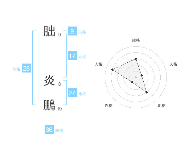 朏 炎鵬さんの総格は36画の3点!