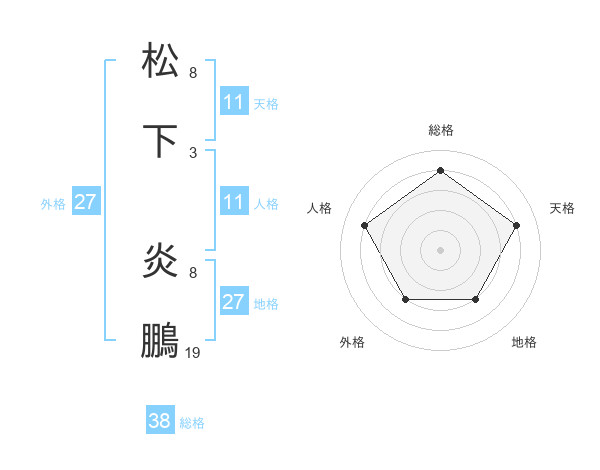 松下 炎鵬さんの総格は38画の4点!