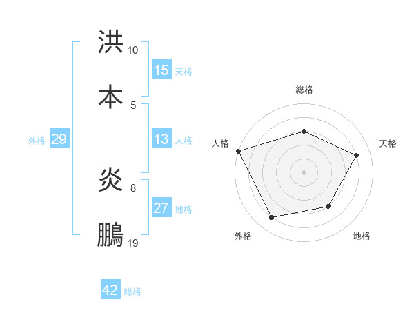 洪本 炎鵬さんを姓名の画数から五運を鑑定