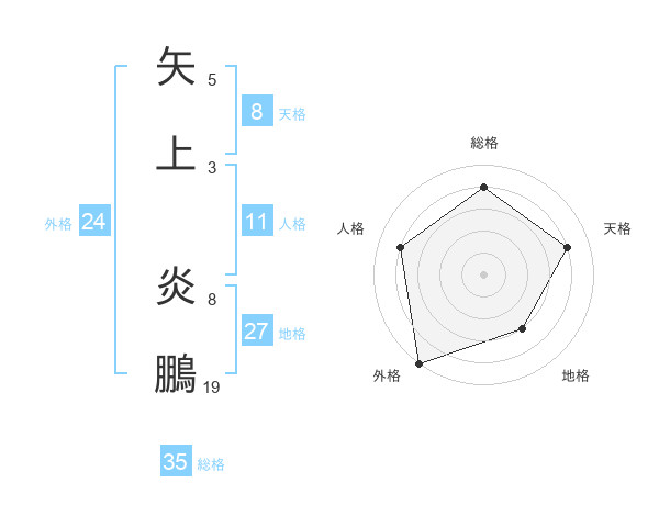 矢上 炎鵬さんを姓名の画数から五運を鑑定