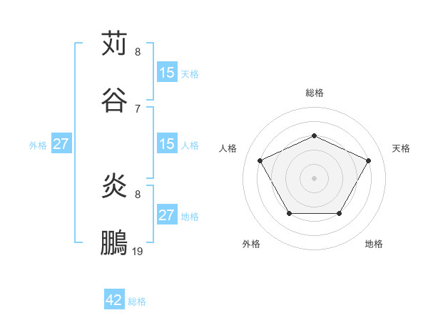 苅谷 炎鵬さんの天格は15画の4点!