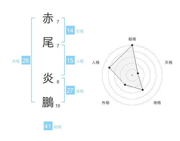 赤尾 炎鵬さんを姓名の画数から五運を鑑定