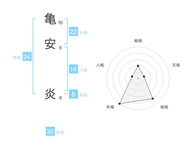 亀安 炎さんの総格は30画の2点!