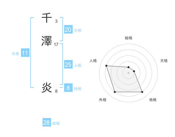 千澤 炎さんの天格は20画の1点!