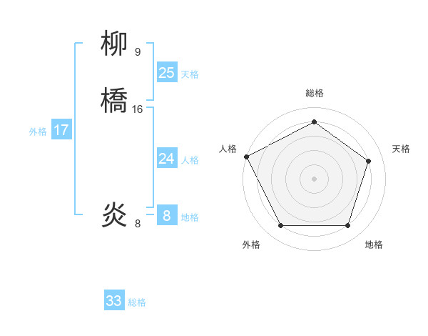 柳橋 炎さんの総格は33画の4点!