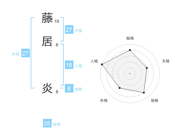 藤居 炎さんの総格は35画の4点!