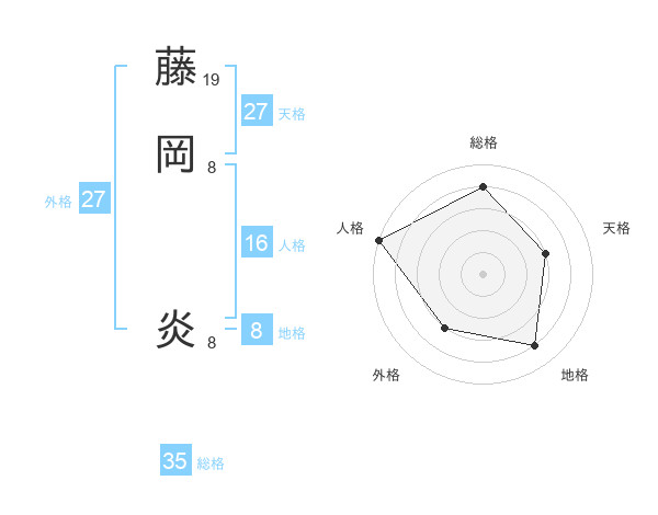 藤岡 炎さんを姓名の画数から五運を鑑定