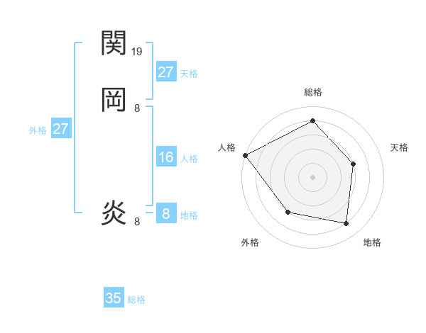 関岡 炎さんの総格は35画の4点!
