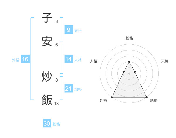 子安 炒飯さんを姓名の画数から五運を鑑定