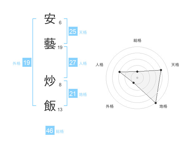 安藝 炒飯さんを姓名の画数から五運を鑑定