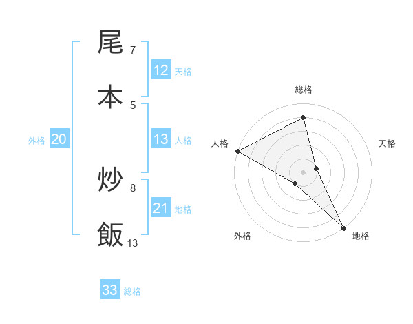 尾本 炒飯さんを姓名の画数から五運を鑑定