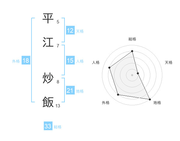 平江 炒飯さんを姓名の画数から五運を鑑定