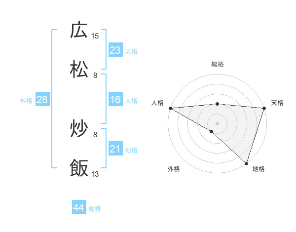 広松 炒飯さんを姓名の画数から五運を鑑定
