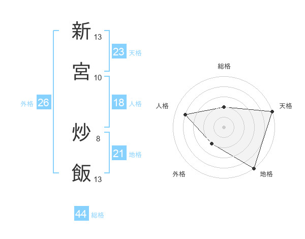 新宮 炒飯さんの天格は23画の5点!