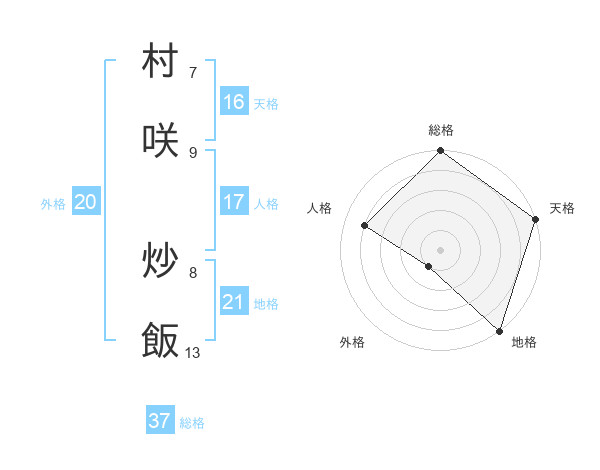 村咲 炒飯さんを姓名の画数から五運を鑑定