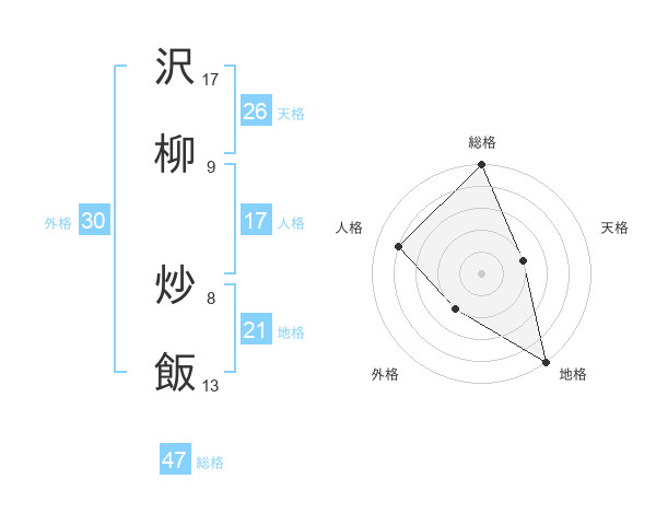 沢柳 炒飯さんの総格は47画の5点!