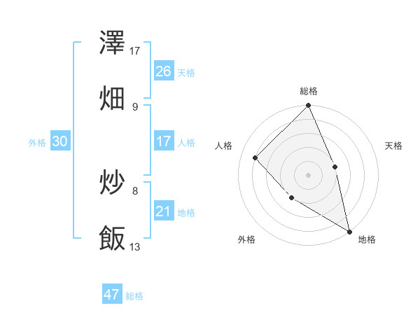 澤畑 炒飯さんを姓名の画数から五運を鑑定