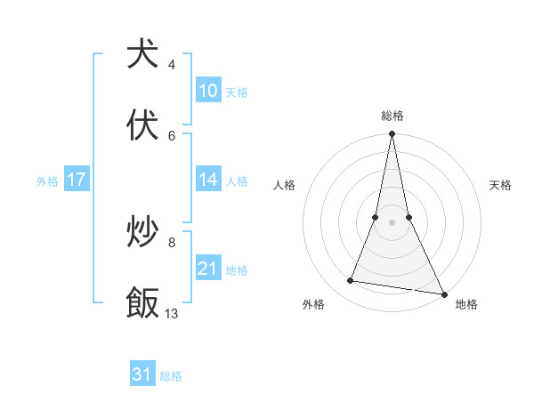 犬伏 炒飯さんの総格は31画の5点!