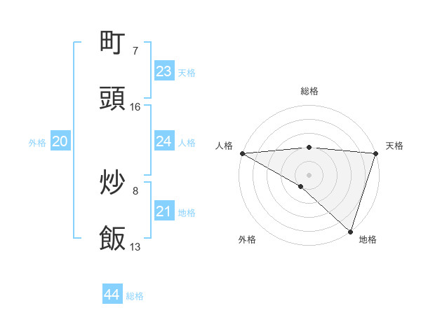 町頭 炒飯さんを姓名の画数から五運を鑑定