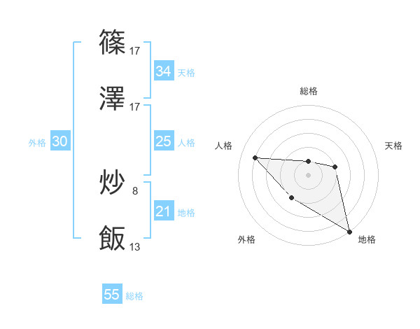 篠澤 炒飯さんの天格は34画の2点!