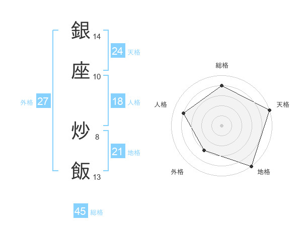 銀座 炒飯さんの総格は45画の4点!
