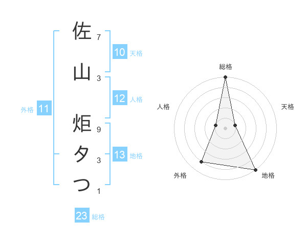 佐山 炬タつさんの総格は23画の5点!