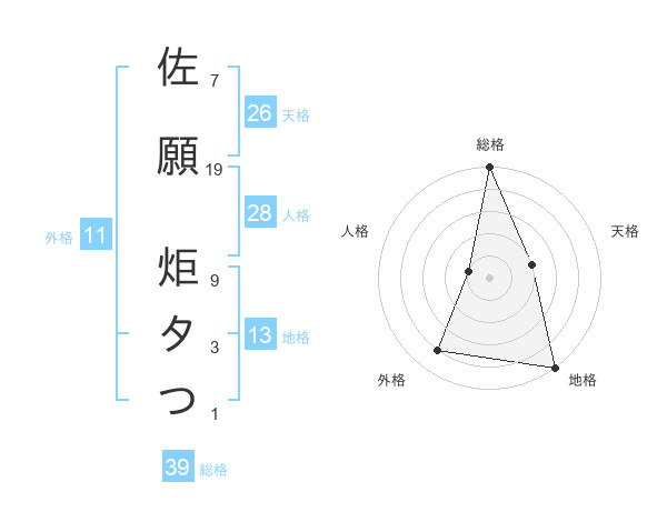 佐願 炬タつさんの総格は39画の5点!