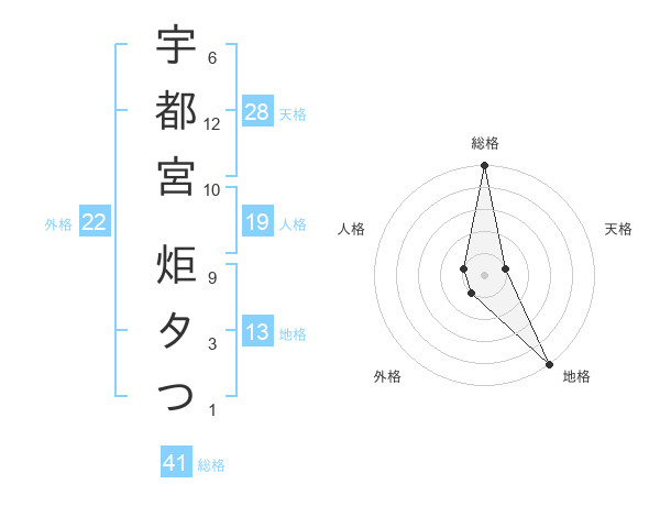 宇都宮 炬タつさんを姓名の画数から五運を鑑定