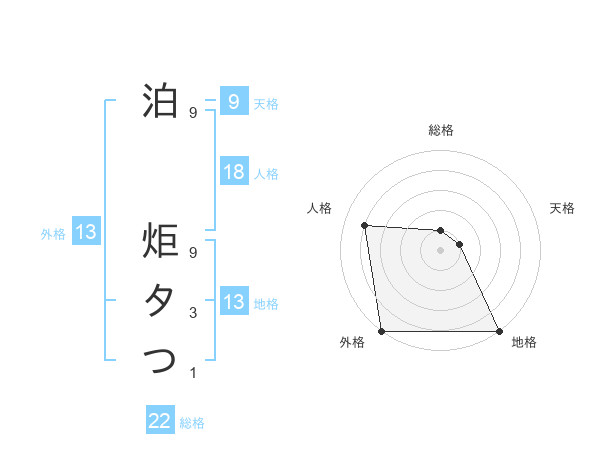 泊 炬タつさんの外格は13画の5点!