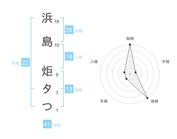 浜島 炬タつさんを姓名の画数から五運を鑑定
