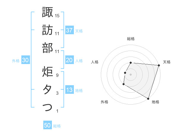 諏訪部 炬タつさんを姓名の画数から五運を鑑定