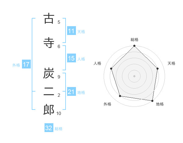 古寺 炭二郎さんを姓名の画数から五運を鑑定