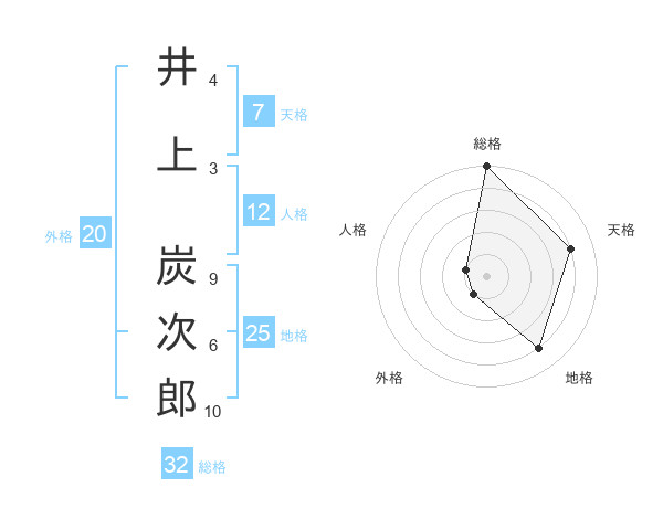 井上 炭次郎さんを姓名の画数から五運を鑑定