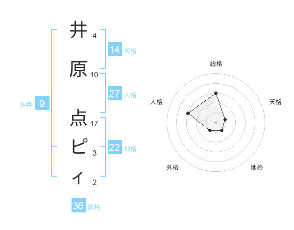 井原 点ピィさんの天格は14画の1点!