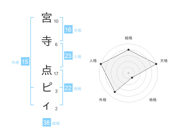 宮寺 点ピィさんを姓名の画数から五運を鑑定