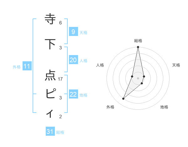 寺下 点ピィさんを姓名の画数から五運を鑑定