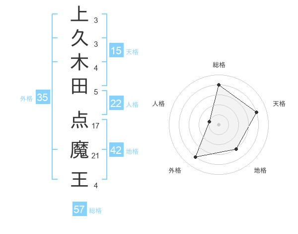 上久木田 点魔王さんを姓名の画数から五運を鑑定